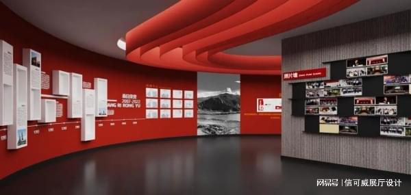 通过红色元素的巧妙运用,打造一个肃穆庄重的展览空间★★。墙面的设计以红色元素为主★★★,墙上挂着红色故事,以及横幅元素★★,红色文字符号,共同营造出一种浓厚的红色文化氛围。这种设计不仅体现了红军的英勇精神★★,也让观看者在沉浸式体验中深刻感受到红色历史的厚重★★。