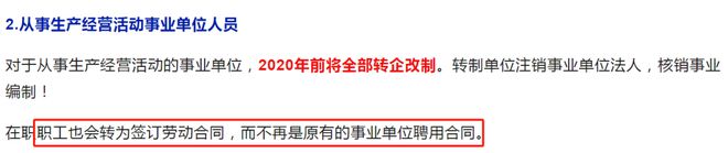 首先就是转企。事业单位的改革,人员安置的基本原则就是“人随事走★”。转企的事业单位,人员性质跟随单位发生变化★★,由聘用制转变为合同制。