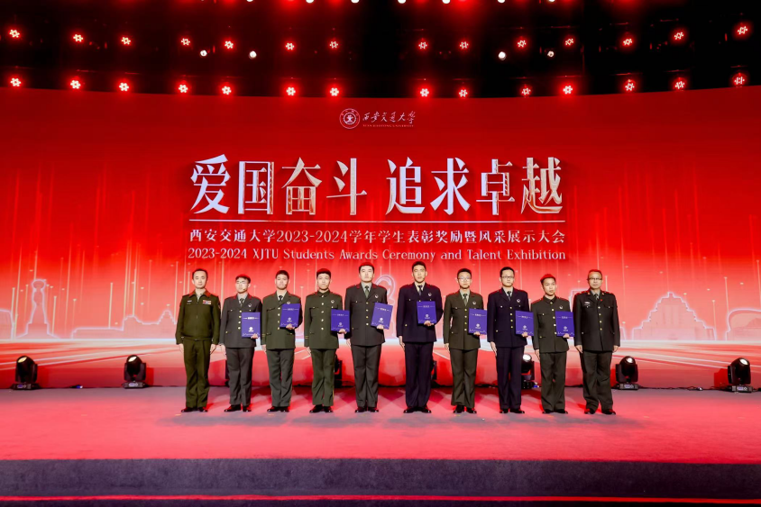 交大学子始终坚持用实际行动践行奉献担当,交大义务兵役群体携笔从戎、强军报国,将青春播撒在祖国最需要的地方★,彰显了交大青年为国奋斗的情怀使命。2024年度17名退役返校的士兵获得义务兵役奖荣誉,陕西省人民政府征兵办公室副主任吕森大校为获奖代表颁奖。