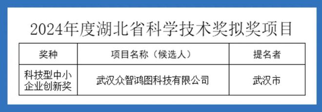 ▲荣获★“2024年度湖北省科技型中小企业创新奖”★,是对众智鸿图新技术开发★、产品创新★、高水平队伍组建、创新平台建设和创新管理等方面的高度肯定。