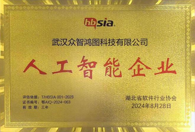 ▲荣获“湖北省人工智能企业证书”,这不仅是对公司长期在人工智能领域精耕细作、创新发展的充分认可★,也是对众智鸿图未来发展潜力的期待。