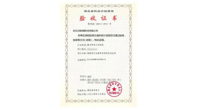 ▲湖北省重点研发计划项目★“物联网中台操作系统研发及应用★”完成验收★,进一步彰显了众智鸿图在物联网技术领域的科技创新★、产业融合和成果转化的能力水平。