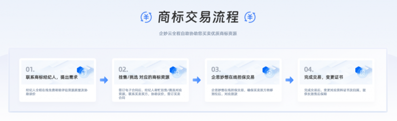 “标拍拍”平台提供全方位的一站式交易服务,包括从联系商标经纪人★、挑选商标资源、在线担保交易到完成交易和变更证书的全流程服务。每一个环节都由资深的知识产权顾问把关,确保每一项服务的专业性和权威性★,快速响应客户需求,实现商标价值的最大化,确保交易过程的顺畅和高效。