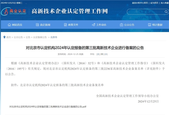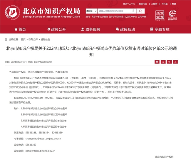 12月18日,北京市知识产权局认定华熙荣熙公司为2024年度北京市知识产权试点单位,高度认可了华熙荣熙公司在拥有核心技术研发实力和知识产权保护与应用方面的突出表现。